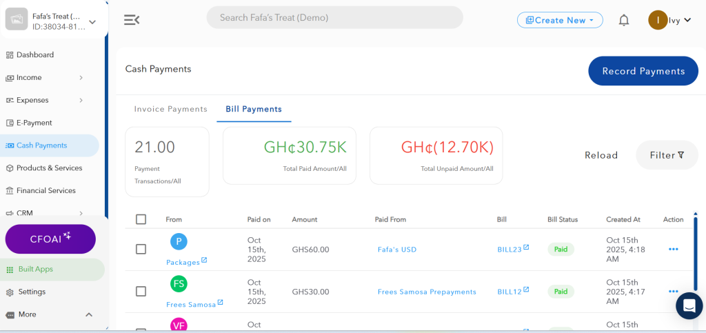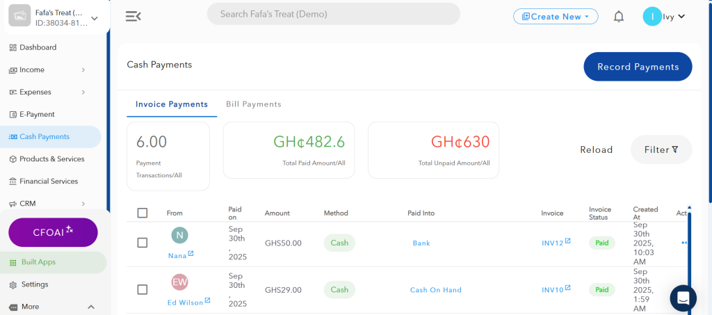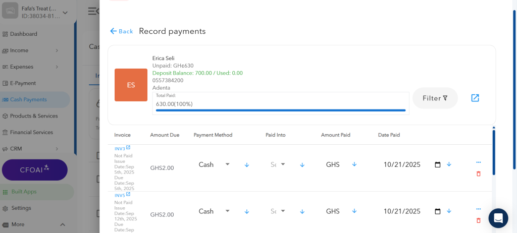 Cash Payments allow you to record and manage customer transactions seamlessly. With this feature, you can view outstanding invoices, process payments, and generate reports, all within a single interface. This functionality is particularly beneficial for: